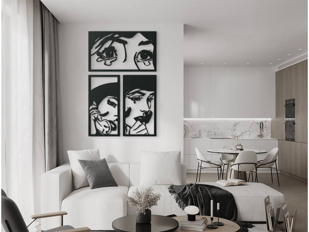 Das Holzbild COMICS ist eine Dekoration für moderne Räume, die keine Angst vor Experimenten haben. Das Bild bringt dem Raum ein originelles Design und es kann einfach auf Möbel und weitere Accessoires abgestimmt werden.