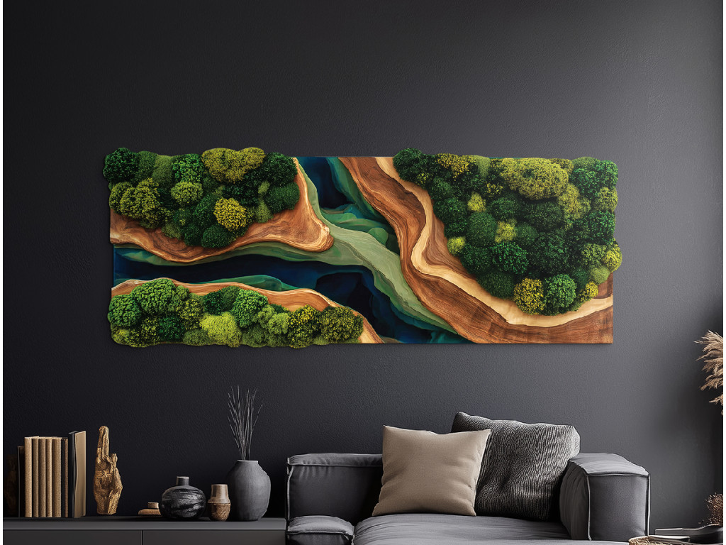Das gedruckte Moosbild Überlappung ist ein Design-Accessoire, das die Schönheit der Natur mit den Vorteilen des modernen UV-Drucks verbindet. Im Vergleich zu klassischen Moosbildern oder Epoxid-Accessoires bietet es einen niedrigeren Preis, einfachere Pflege und lange Haltbarkeit. Dank der perfekten Imitation sieht es authentisch aus und verleiht Ihrem Interieur einen frischen grünen Akzent. Machen Sie einen Schritt in Richtung moderner Eleganz und gönnen Sie sich ein Bild, das lange hält.
