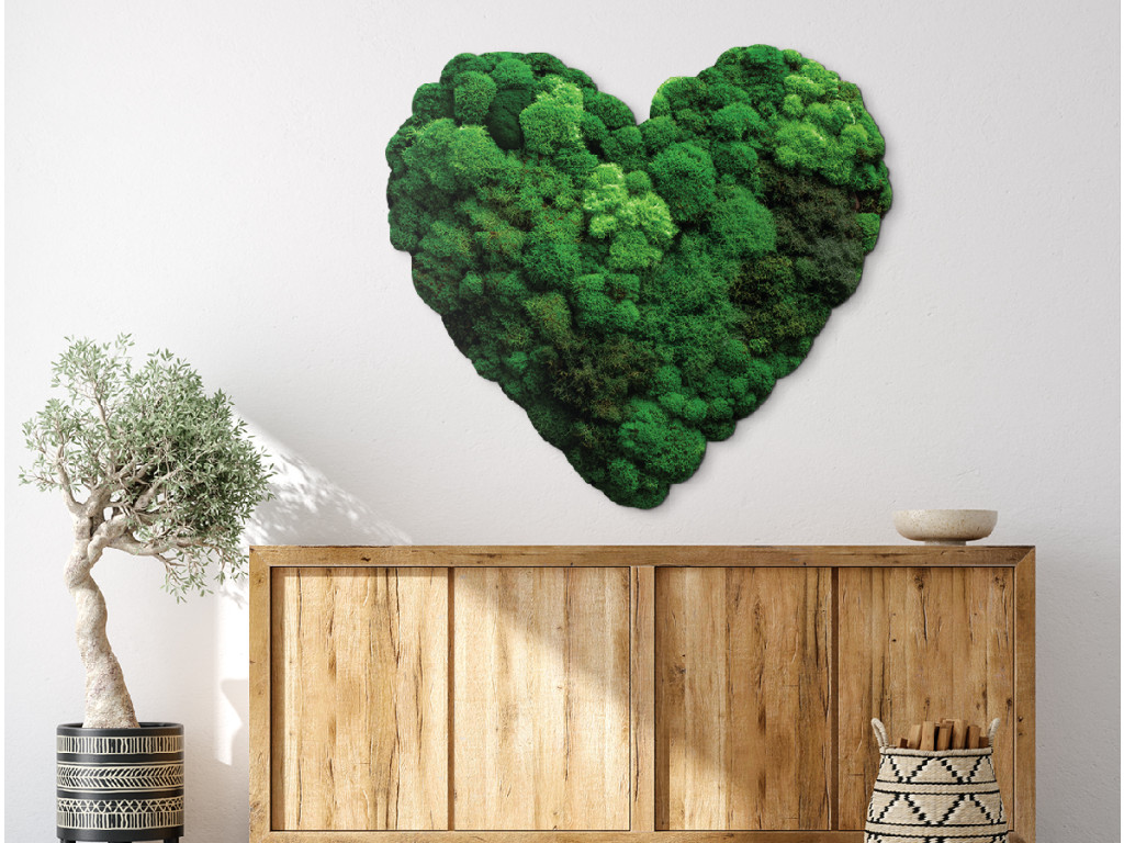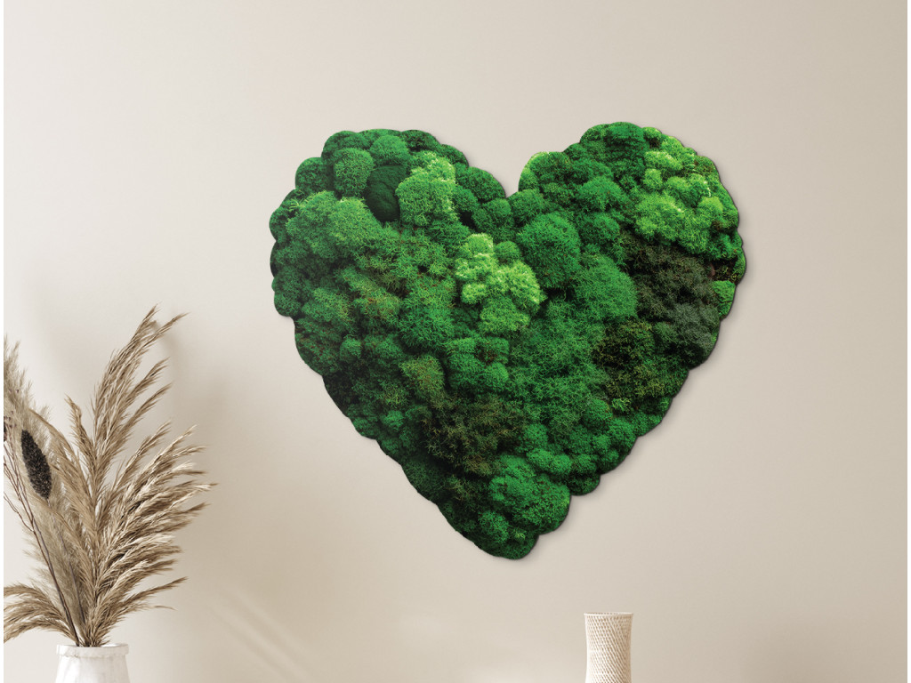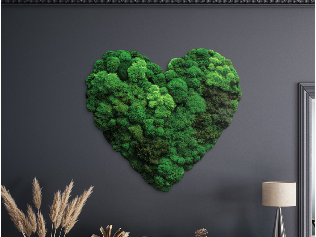 Das herzförmige Moosbild Atemzug bringt eine perfekte Imitation von lebendem Moos in Ihr Ambiente. Dank moderner UV-Technologie erhalten Sie einen realistischen 3D-Effekt, ganz ohne Wartungsaufwand. Dieses Bild behält über Jahre hinweg sein frisches Aussehen und kostet weniger als klassische Moosbilder. Wählen Sie ein originelles Stück, das die Schönheit der Natur mit Funktionalität verbindet.