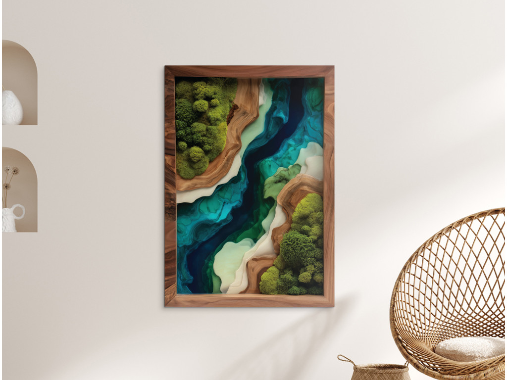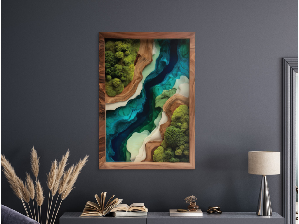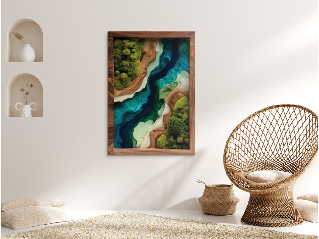 Genießen Sie den Anblick des Moosbildes „Lagune“ (UV-Druck), das wie echt wirkt, aber weder gegossen noch beleuchtet werden muss. Die realistische Imitation von Moos und auffälligem Epoxidharz ist nicht nur preisgünstiger, sondern auch haltbarer als das Original. Ihr Raum erhält ein stilvolles Designelement mit langer Lebensdauer und ohne Wartungsaufwand. Dieses Bild ist die ideale Lösung für ein modernes Zuhause oder Büro.