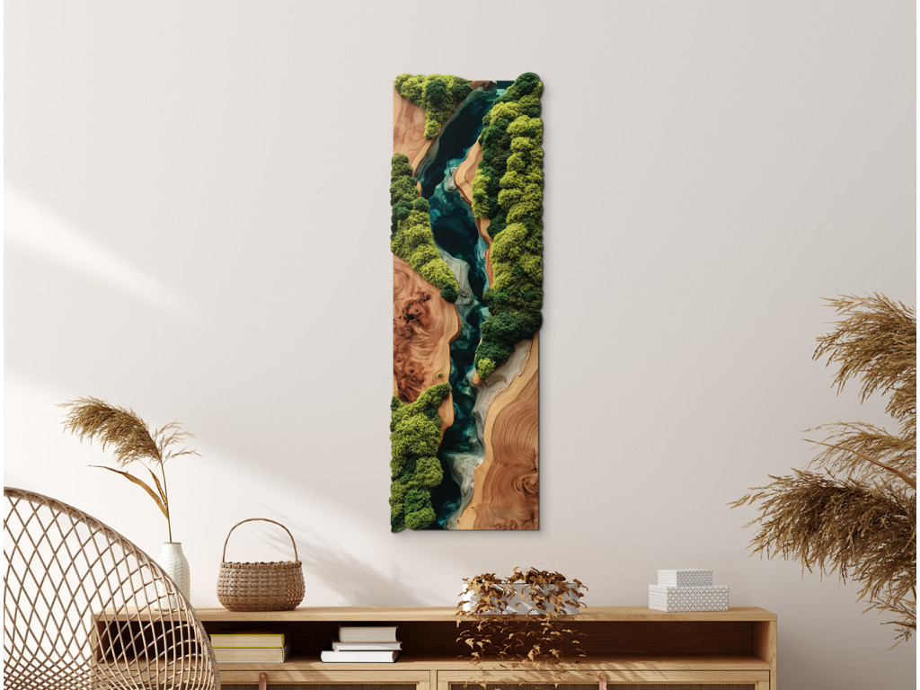 Genießen Sie den Anblick des Moosbildes „Touch of Nature“ (UV-Druck), das wie echt wirkt, aber weder gegossen noch beleuchtet werden muss. Die realistische Imitation von Moos und auffälligem Epoxidharz ist nicht nur preisgünstiger, sondern auch haltbarer als das Original. Ihr Raum erhält ein stilvolles Designelement mit langer Lebensdauer und ohne Wartungsaufwand. Dieses Bild ist die ideale Lösung für ein modernes Zuhause oder Büro.