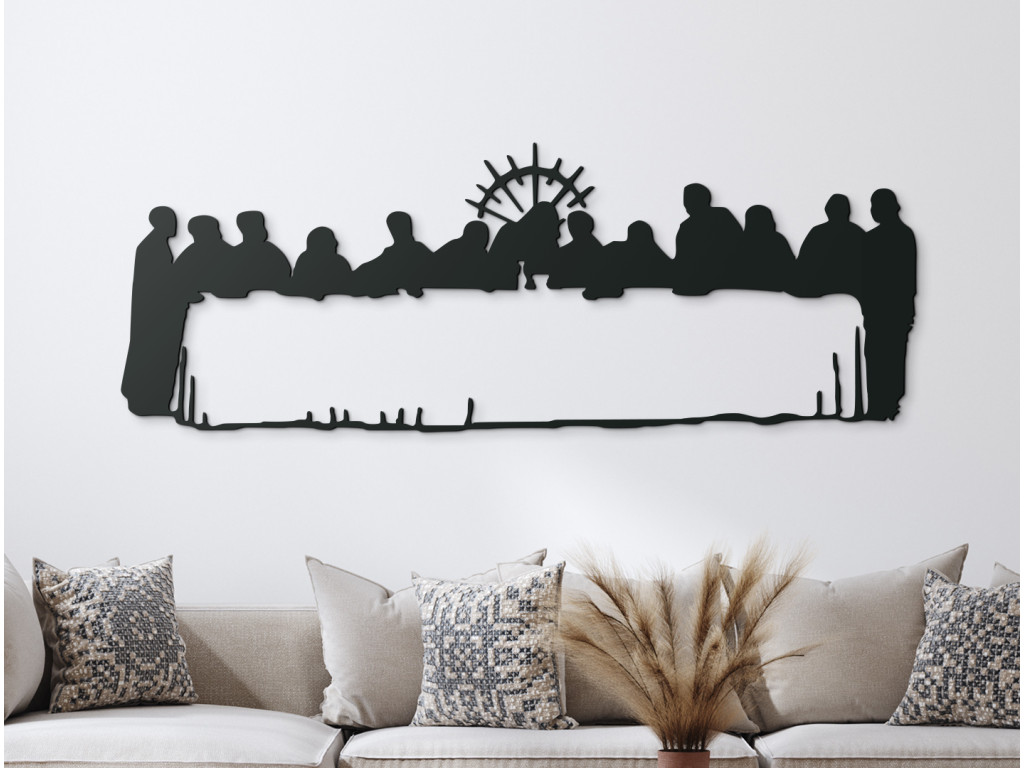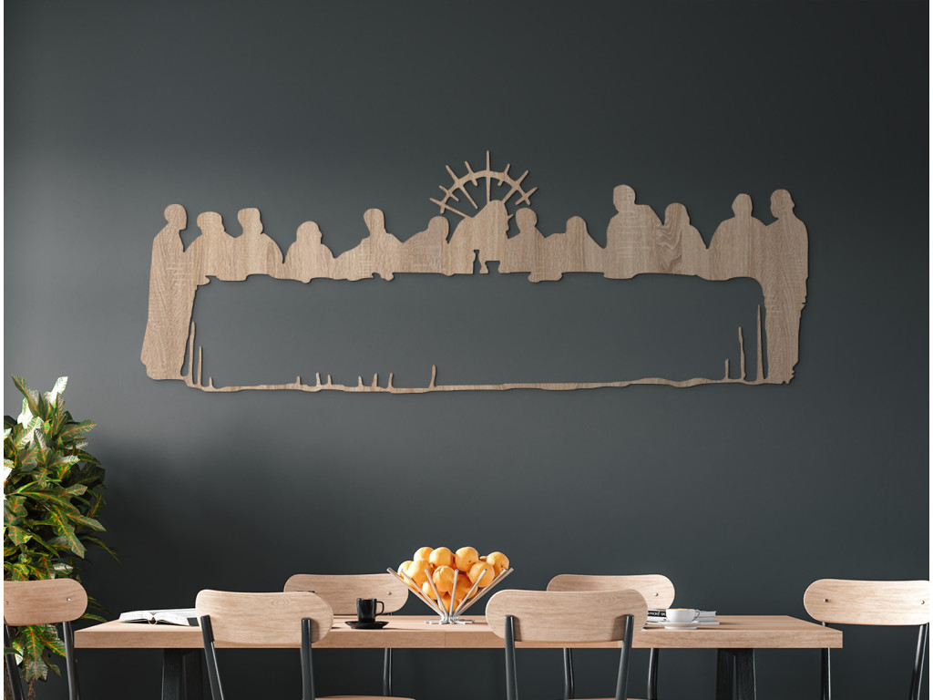 Das sorgfältig ausgeschnittene Bild stellt die Szene dar, in der Jesus und seine zwölf Apostel ihr letztes Mahl vor seiner Kreuzigung einnehmen. Erfreuen Sie sich oder Ihre Lieben mit einem einzigartigen Bild.