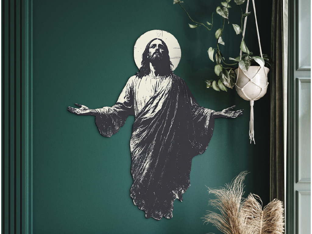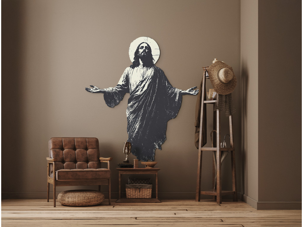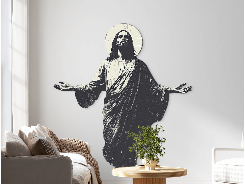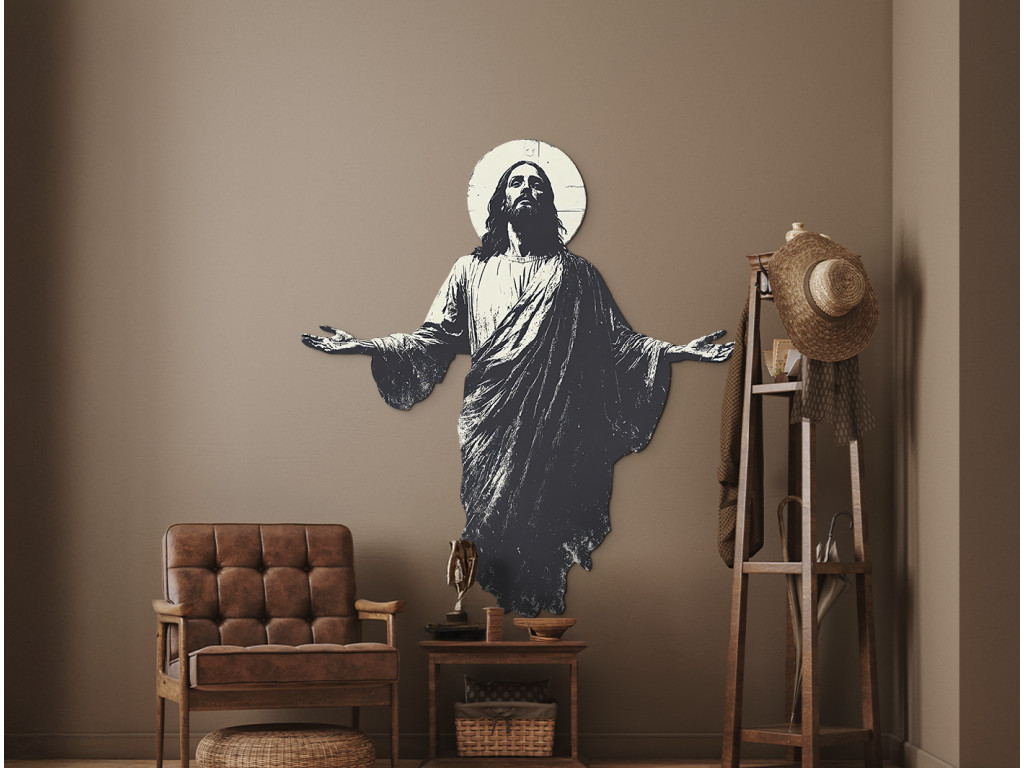 Das Bild zeigt Jesus Christus – die zentrale Figur des christlichen Glaubens, dessen Leben und Mission die Grundlage der Lehre von der Erlösung und dem ewigen Leben bilden. Jesus, bekannt als Gottes Sohn und Messias, brachte der Welt eine Botschaft der Liebe, Vergebung und Hoffnung. Seine Kreuzigung und Auferstehung werden als entscheidender Ausdruck der Gnade Gottes angesehen, durch die den Menschen die Möglichkeit der Versöhnung und Erlösung angeboten wurde.