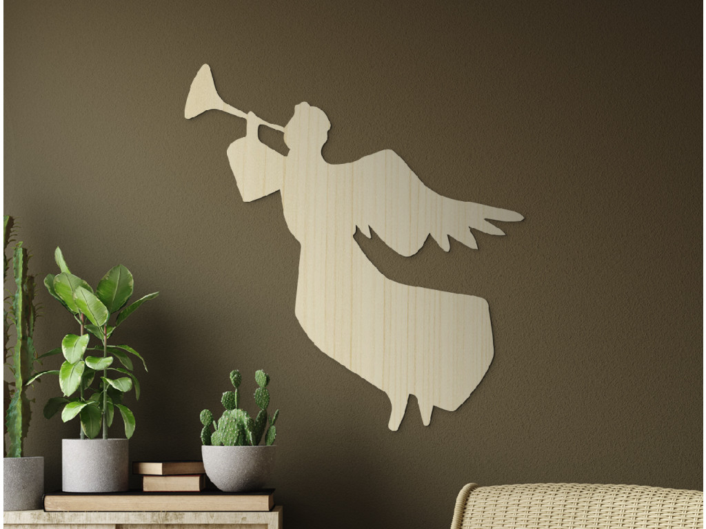 Das sorgfältig gearbeitete Bild zeigt einen Engel, der die Trompete spielt, womit er die Verkündung guter Nachrichten und die Gegenwart Gottes symbolisiert.