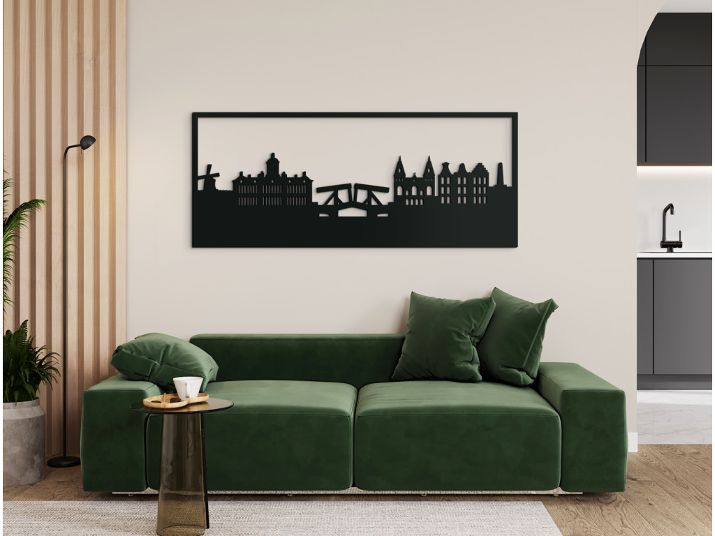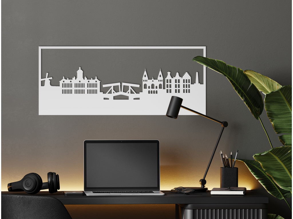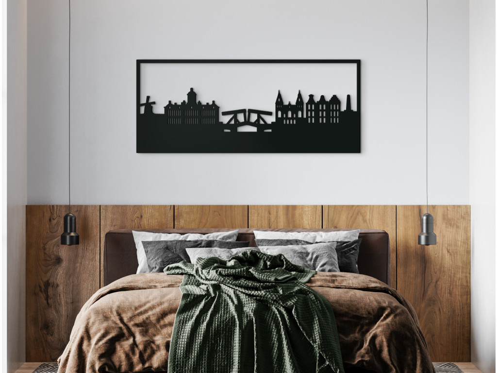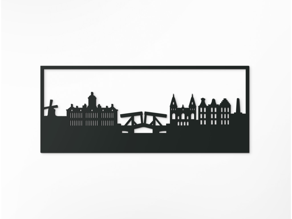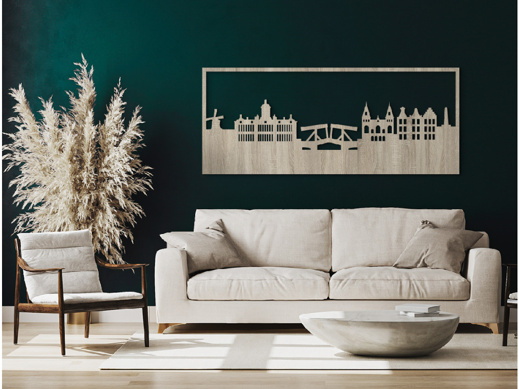 Die Hauptstadt der Niederlande wurde Ende des 12. Jahrhunderts gegründet. Von einem kleinen Fischerdorf hat sie sich zu einer Metropole entwickelt, die sowohl ein Finanz- als auch ein Kulturzentrum ist. Sie ist berühmt für ihre Windmühlen, bunten Tulpen, zahlreichen Grachten, Fahrräder und ihr Nachtleben. Die typischen Symbole und auch etwas von der historischen Architektur der Stadt sind in diesem Holzpanorama dauerhaft verewigt worden. Das Amsterdam-Bild kann Ihre Einrichtung in 3 Größen und vielen Farbvarianten dekorieren.