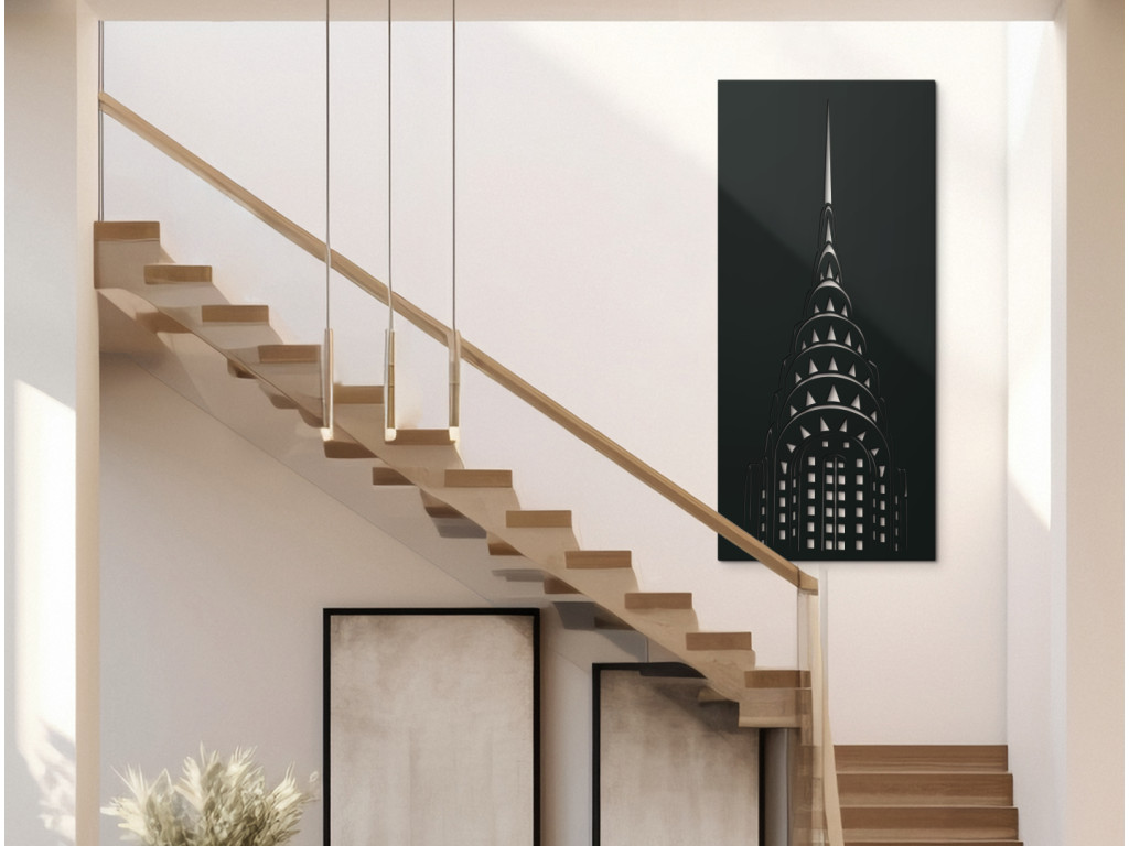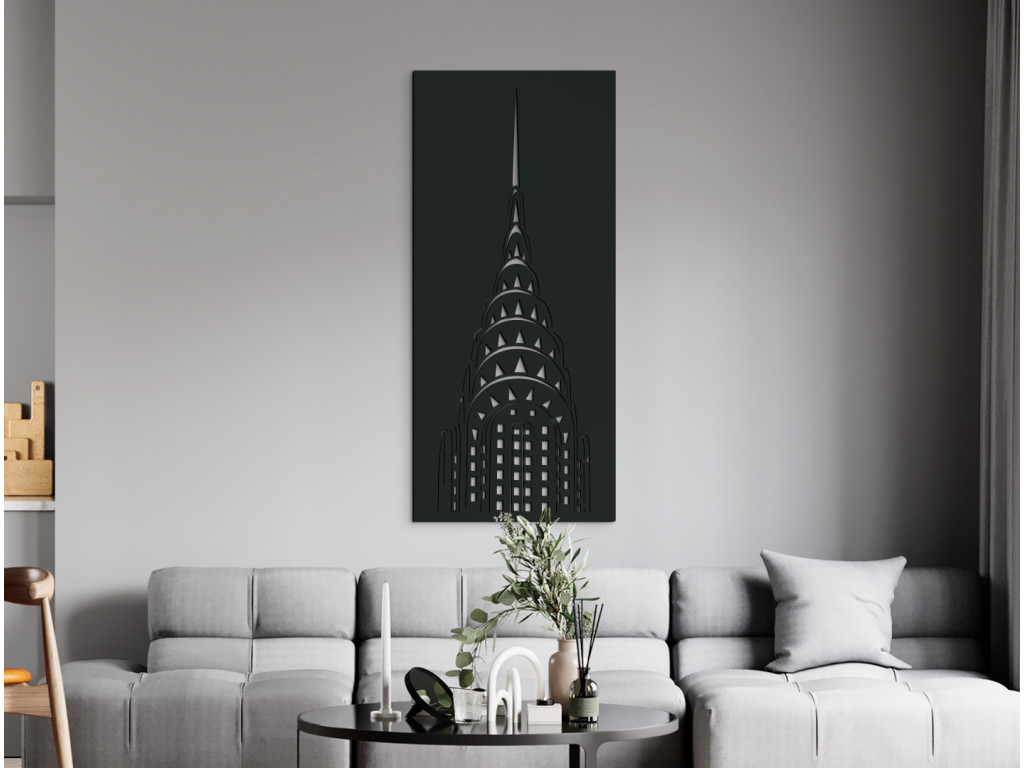 Ein Wolkenkratzer an der East Side von Manhattan ragt aus allen anderen heraus. Er war der erste weltweit, der eine Höhe von 319 Metern erreichte und sich damit in die Reihe der ikonischsten Symbole New Yorks einreihte. Heute ist es das zwölfthöchste Gebäude der Stadt und dank seines spitzen Art-déco-Stahlbogenturms in der Skyline leicht zu erkennen. Das Holzbild des Chrysler Buildings, das es in 3 Größen und 8 Dekoren gibt, stellt den Wolkenkratzer in einem vollen Rahmen durch charakteristische Linien dar.