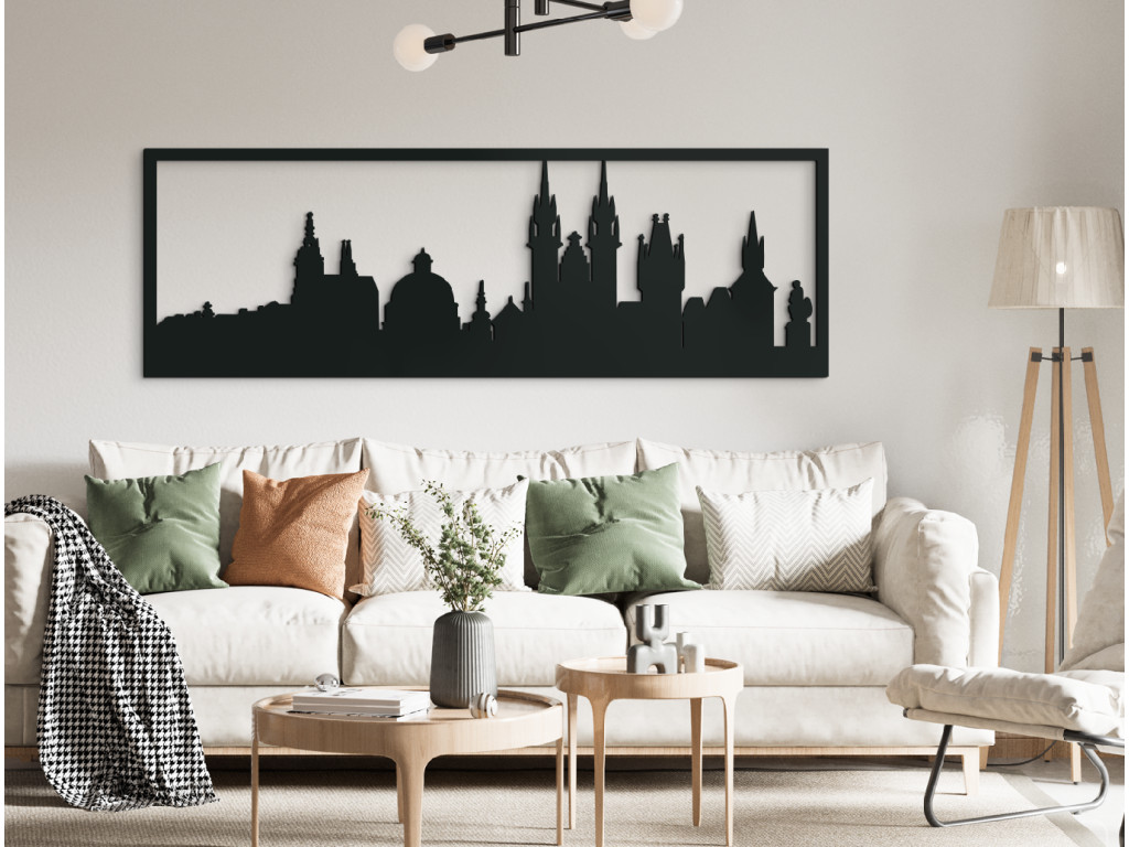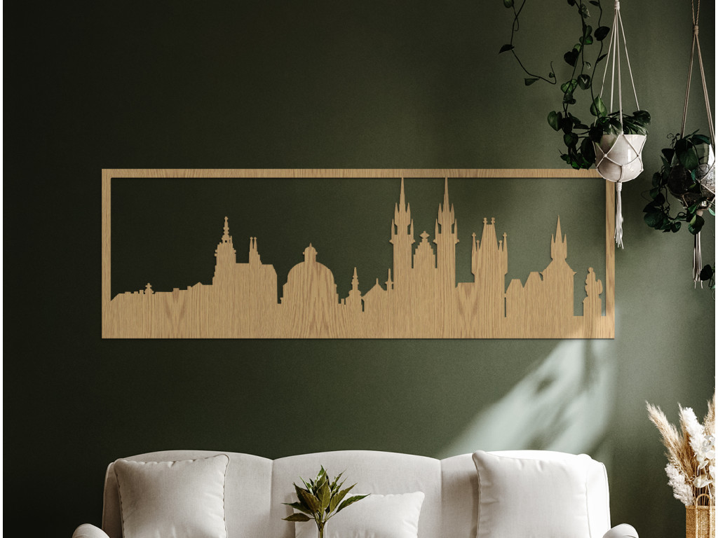 Wie Sie auf dem Bild selbst sehen können, hat die Hauptstadt der Tschechischen Republik ihren Spitznamen Stadt der hundert Türme zu Recht verdient. Das weitläufige Panorama besteht aus den Spitzen von Dächern, Kuppeln und hohen Türmen bedeutender historischer Gebäude, die sich über die Moldau erheben. Das Holzbild von Prag bietet die einmalige Gelegenheit, sie alle auf einen Blick zu sehen, und zwar in 3 Größen und 8 Holzfarben.