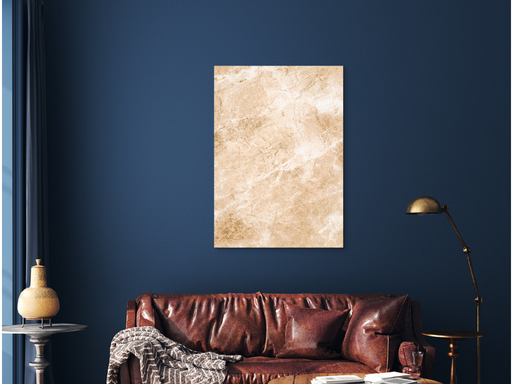 Das Marmorbild Erdfarbene Reflexe ist ein elegantes Accessoire, das das luxuriöse Aussehen von Marmor mit den Vorteilen des modernen UV-Drucks verbindet. Im Vergleich zu echtem Marmor bietet es einen günstigeren Preis, eine einfachere Montage und keinerlei Wartungsaufwand, wirkt dabei aber ebenso hochwertig und stilvoll. Sandtöne mit Marmordetails sorgen für einen kontrastreichen, modernen Effekt, der jedes Ambiente erstrahlen lässt. Gönnen Sie sich einen Hauch von Eleganz und dauerhafter Schönheit – ein Bild, das lange hält und nie aus der Mode kommt.