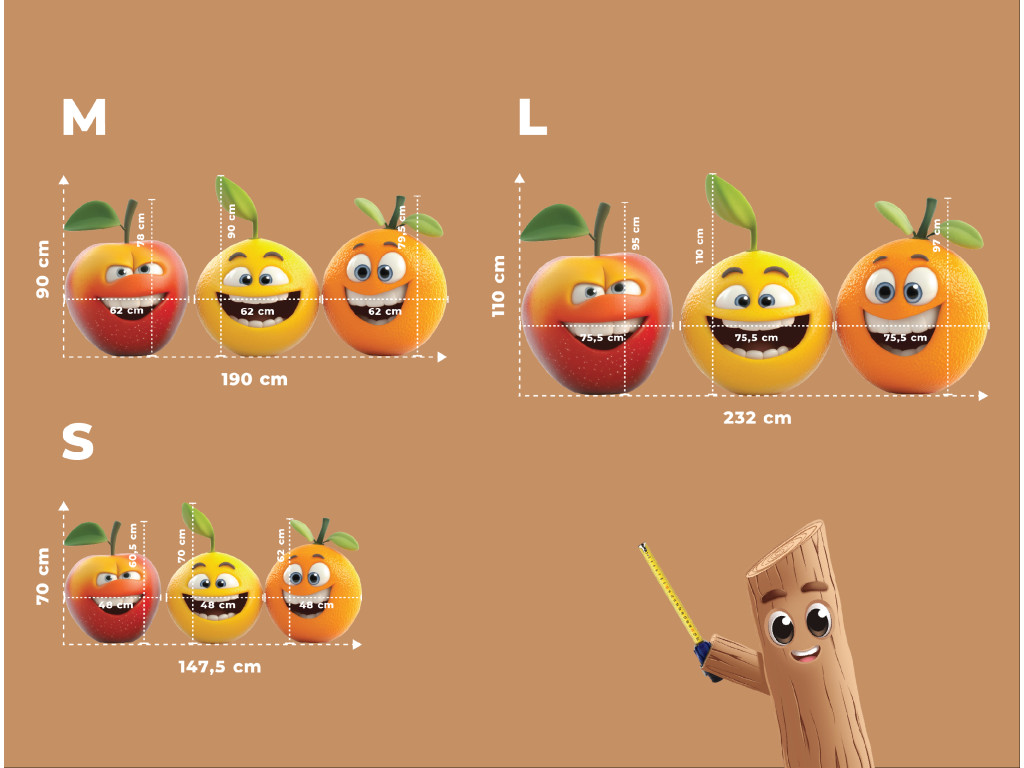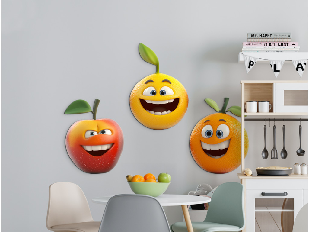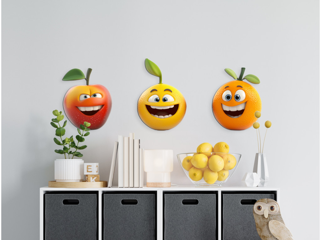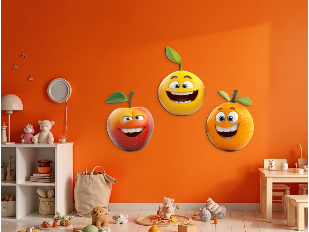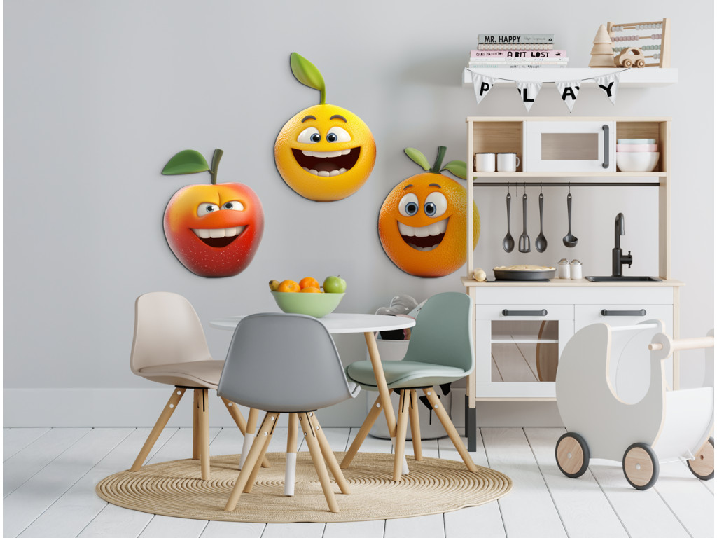 Lächelnde Früchtchen, die jeden Raum erhellen – ideal für kleine Esser und große Lächeler! Diese niedlichen Figuren bringen Farbe, Freude und positive Energie in den Raum. Ideal als Dekoration für das Kinderzimmer, den Kindergarten oder die Küchenecke.