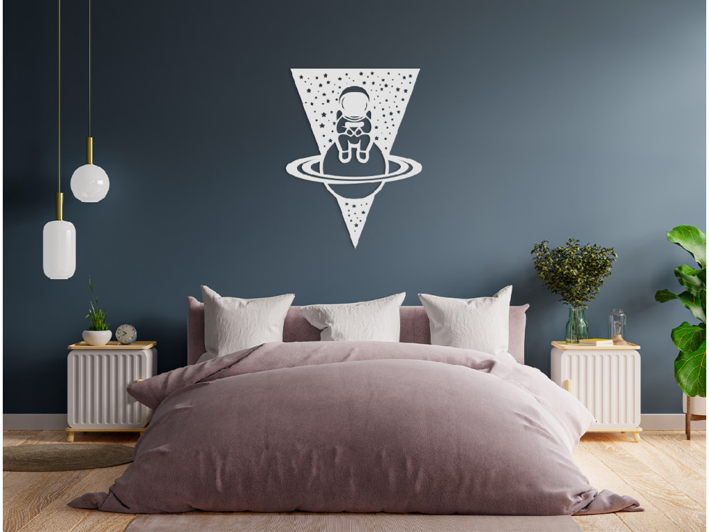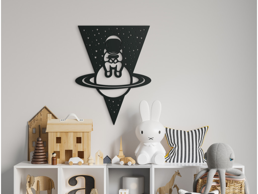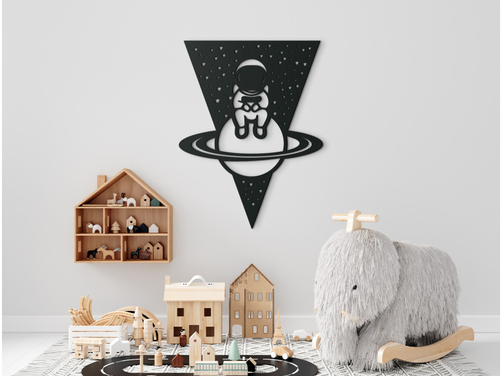 Der Astronaut, der auf dem Planeten Saturn sitzt, zählt zu den beliebten Dekorationen. Der Holzsticker passt übers Bett, den Tisch oder die Kommode. Er macht sich gut in modernen, aber auch klassischen Kinder-, Wohn- und Schlafzimmern. Das Holzbild verschönert einfach jedes Zimmer.