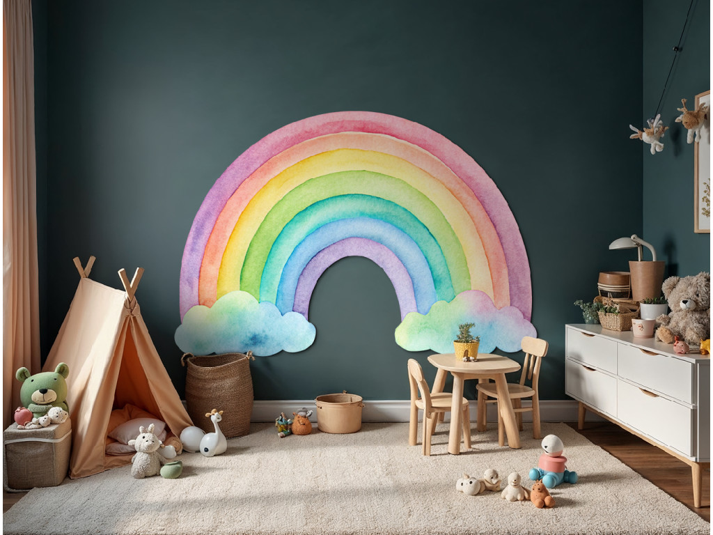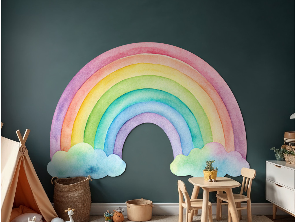 Dieser zarte Wandaufkleber zeigt einen handgemalten Regenbogen in gedeckten Pastelltönen. Die feinen Linien und harmonischen Farben wirken beruhigend und schaffen im Kinderzimmer ein Gefühl von Ruhe und Geborgenheit. Er passt hervorragend zu natürlichen und neutralen Dekorationen im skandinavischen Stil.