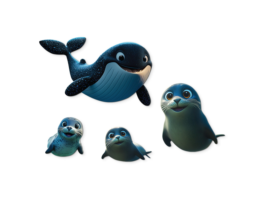 Mehrteilige Kinderdekoration Walfisch und Seehunde