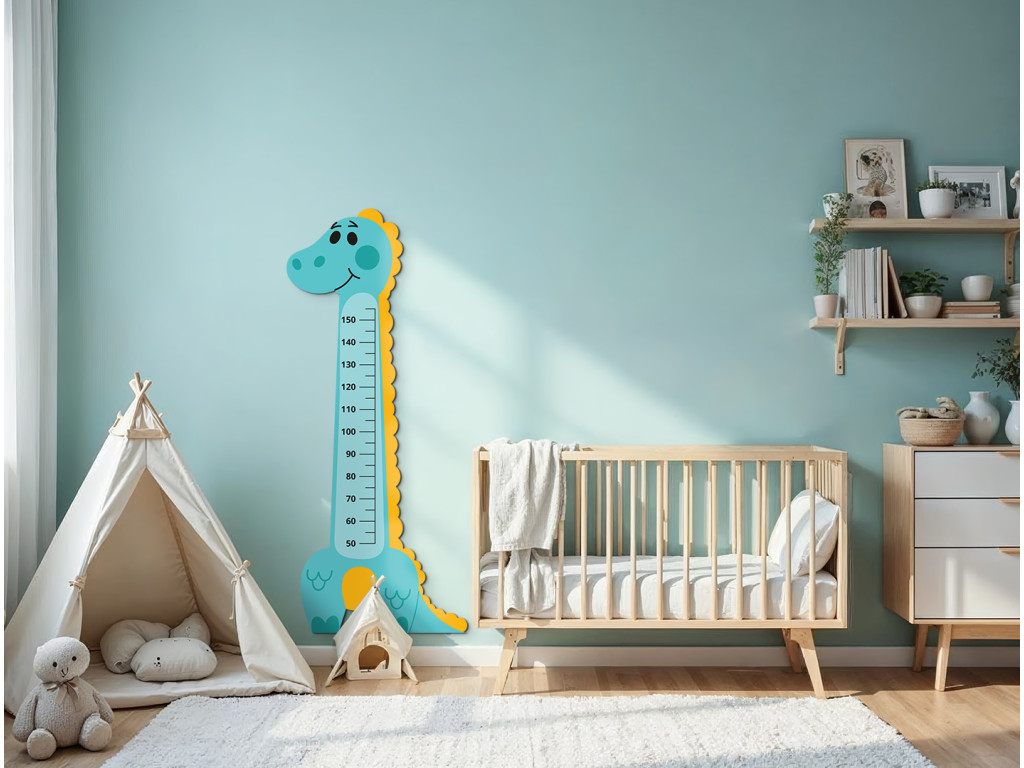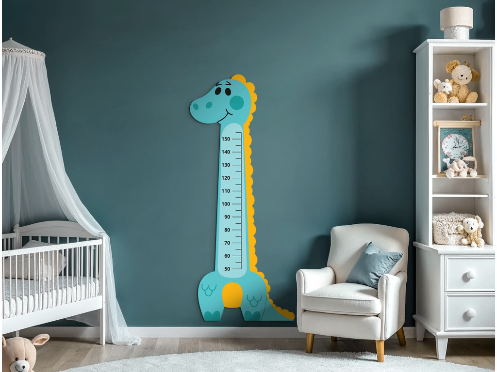 Das Kinder-Wandmaßband in Dinosaurierform ist ein fröhlicher Begleiter, der Kindern zeigt, wie schnell sie wachsen. Das farbenfrohe und verspielte Dinosaurier-Design verschönert jedes Kinderzimmer und dient gleichzeitig als praktische Dekoration. Es misst die Körpergröße von Kindern bis zu 150 cm und wird daher während der gesamten Kindheit ein beliebtes Accessoire sein.
